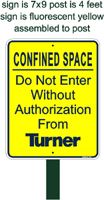 7x9 aluminum CONFINED-SPACE Sign with 4 foot post oprtion: