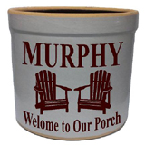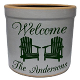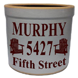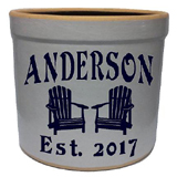 The adirondack personalized crock is deeply etched and then hand painted. It is available in burgundy, navy, green, red and black.