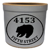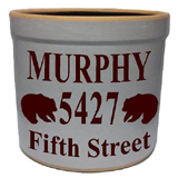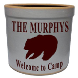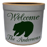 The bear personalized crock is deeply etched and then hand painted. It is available in burgundy, navy, green, red and black.