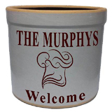 The chef personalized crock is deeply etched and then hand painted. It is available in burgundy, navy, green, red and black.