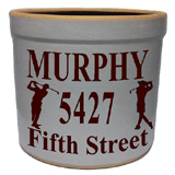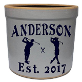 The golfer personalized crock is deeply etched and then hand painted. It is available in burgundy, navy, green, red and black.