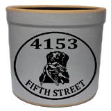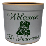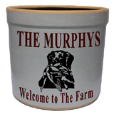The lab-head personalized crock is deeply etched and then hand painted. It is available in burgundy, navy, green, red and black.