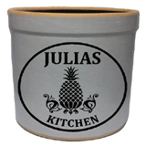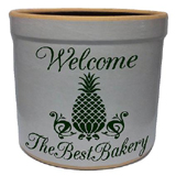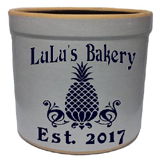 The pineapple personalized crock is deeply etched and then hand painted. It is available in burgundy, navy, green, red and black.